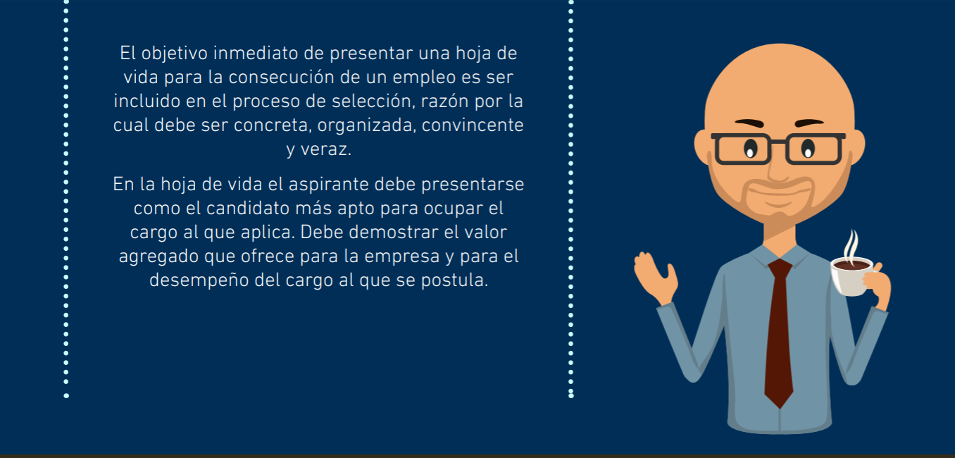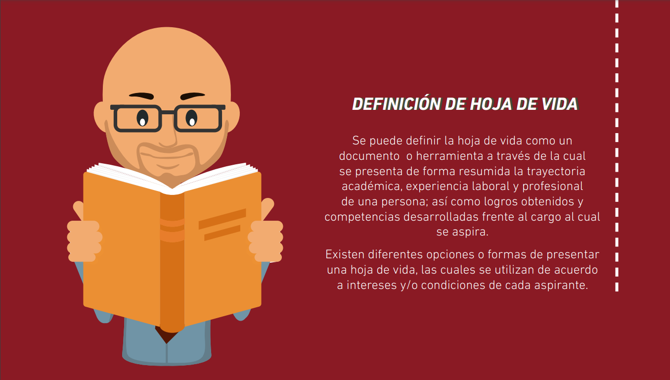Al hablar de la hoja de vida es necesario tener en cuenta varios aspectos, ya que esta se convierte en la herramienta facilitadora para que el analista tenga un primer acercamiento al perfil del trabajador; conocer la información básica a nivel personal, profesional, laboral, los datos más sobresalientes en materia de logros, aptitudes y otras características.